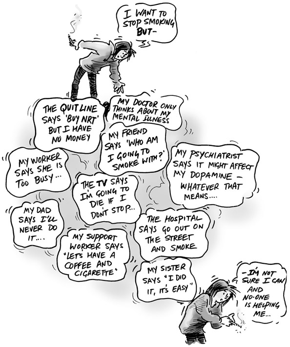 Health SA’s Tobacco and Mental Illness Project has produced many resources for people with a mental illness – who are more likely to smoke, and smoke more heavily than the general population. For example a study has reported that 60% of people with schizophrenia smoke.