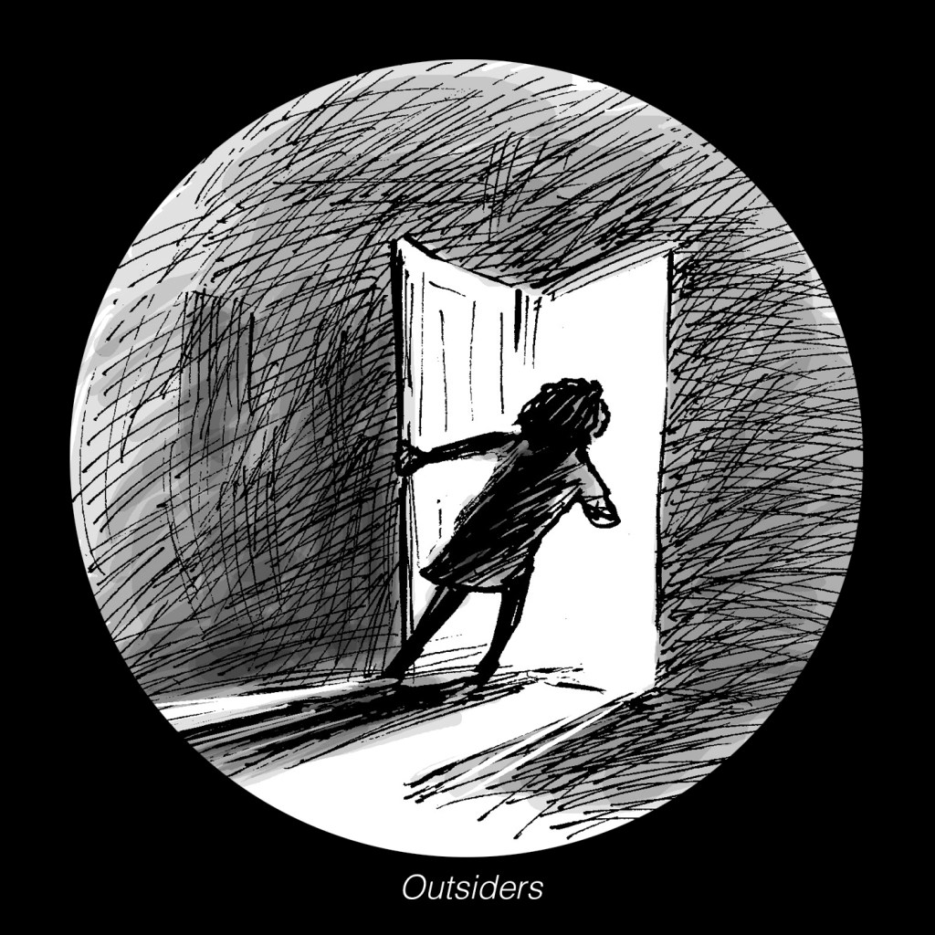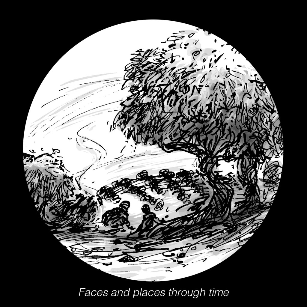 Venturing Out is a book of ‘poems and portraits’ by Roger Rees, published by Moonglow Publishing. The background illustration for the cover and the pictures to introduce each section: