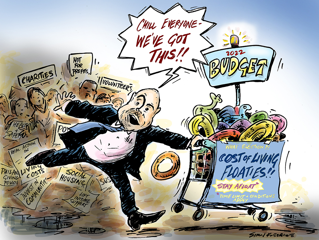 Cartoon for today’s Pro Bono News special 2022 Budget edition. Pro Bono News is the number one news outlet for Australia’s social economy.