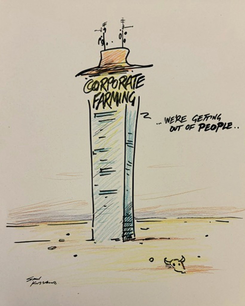 Cartoons from ideas by David Low, Australian Pesticide Reduction Network; highlighting the ‘reckless use of PFAS pesticide Fiprinol in Queensland and NSW ..’ in the fight against the red fire ant outbreak, the widespread use of the herbicide Paraquat, linked to Parkinson’s disease, and more.