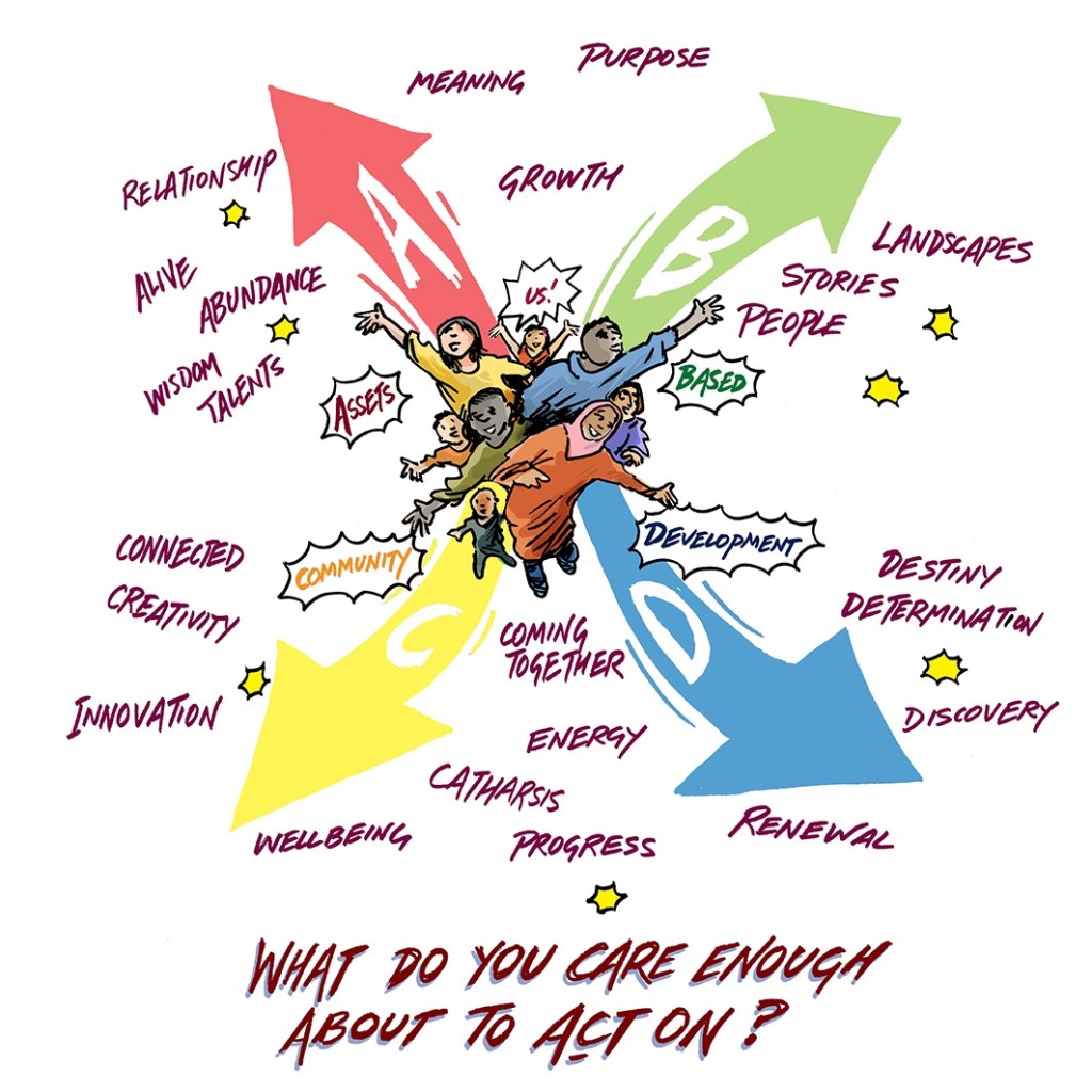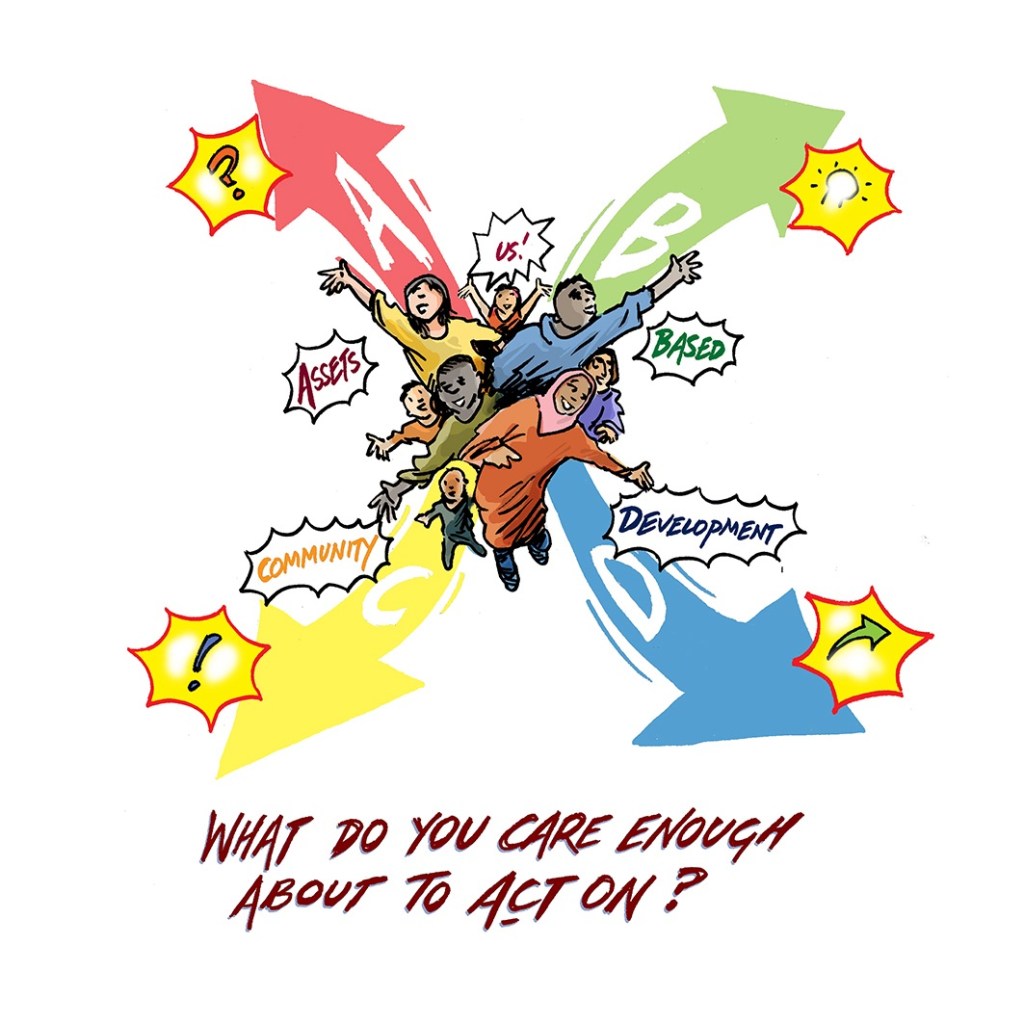 Dimitrios Papalexis, founder and director at Soulgen – building social capital, driving social innovation, enhancing community wellbeing – wanted a design that illustrated Asset Based Communiy Development (ABCD) – for T-shirts and other uses.