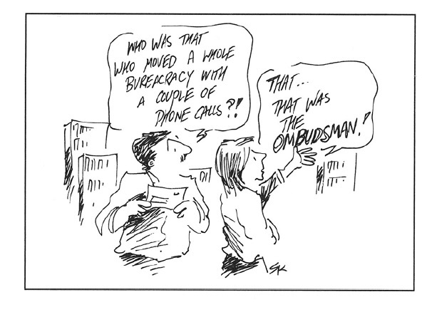 In the 1980s one of my first regular cartooning assignments was illustrating a number of each year’s case studies in the South Australian Office of the Ombudsman annual reports. This led to also doing illustrations for the New South Wales Ombudsman – a number of which have been used in the exhibition and also in the History Report: https://www.ombo.nsw.gov.au/50-years-pursuing-fairness-for-nsw-1975-2025