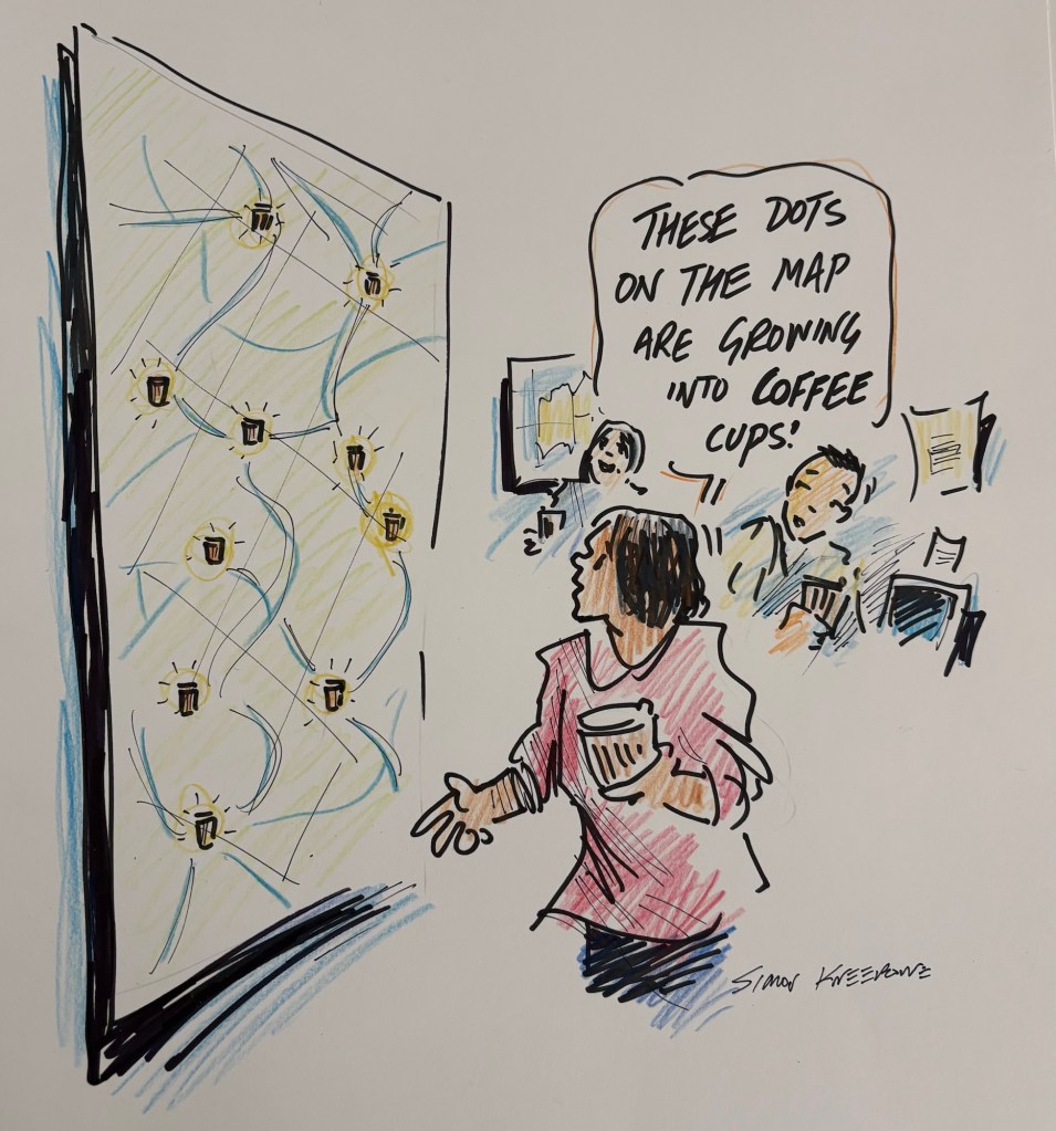 The inaugural Positive Pathways to local Rural Prosperity conference was held in Pickering Brook, Western Australia, September 17-20th 2024. Initiated by The Bank of Ideas which has been committed to ‘supporting the growth of enterprising, sustainable and vibrant small-town communities and economies’ since 1989. Here are a few of the cartoons drawn during the conference highlighting just some of the great ideas from the presentations and sessions. For more about small town reinvention and conference assets and presentations click here.