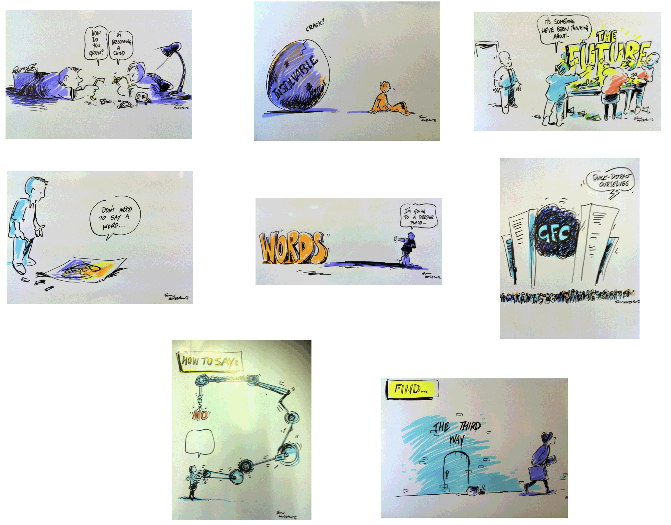 Cartooning at conferences and workshops – capturing and recording a groups’ thoughts, ideas and resolutions quickly in a visual form.