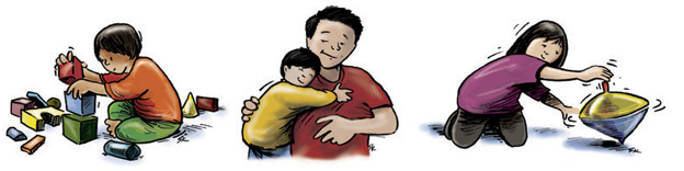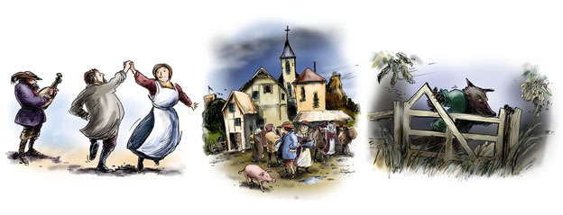 Illustrations above from the facilitation game Werewolf , a set of game cards and instruction book produced by Andrew Rixon Babelfishgroup http://www.babelfish.com
