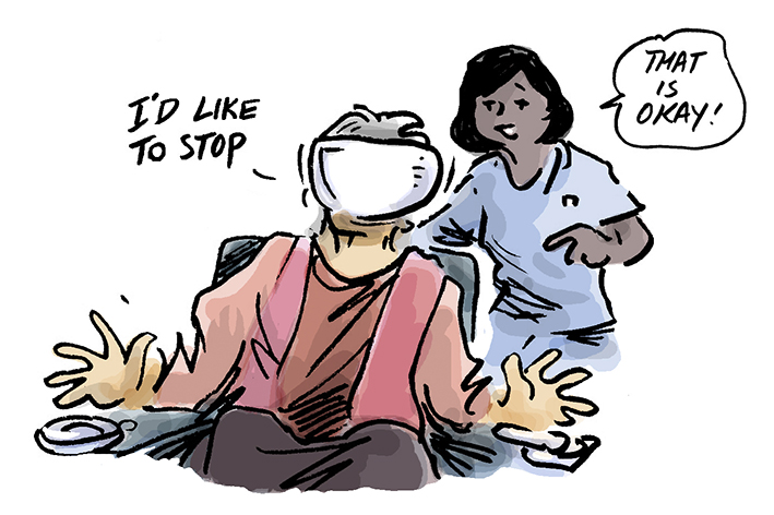 Cartoon illustrating Mike Rungie’s Get busy living or get busy dying: option, published today in Aged Care Insite. ‘Older people are telling us it’s not their death that they are worried about but the years of suffering before it. Strangely, this suffering has never bothered the rest of us enough to do much about it…’